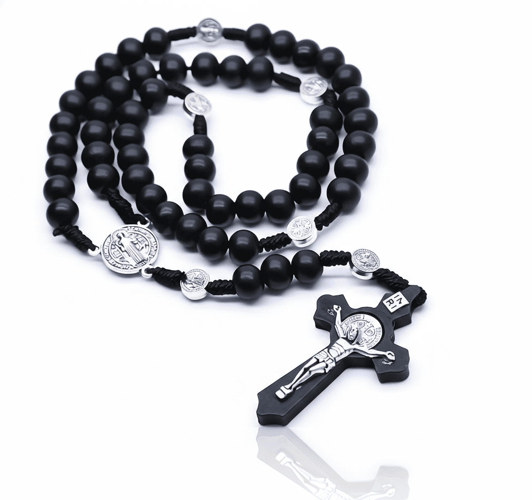 Black Wooden Saint Benedict Medal Rosary Beads 22-inch