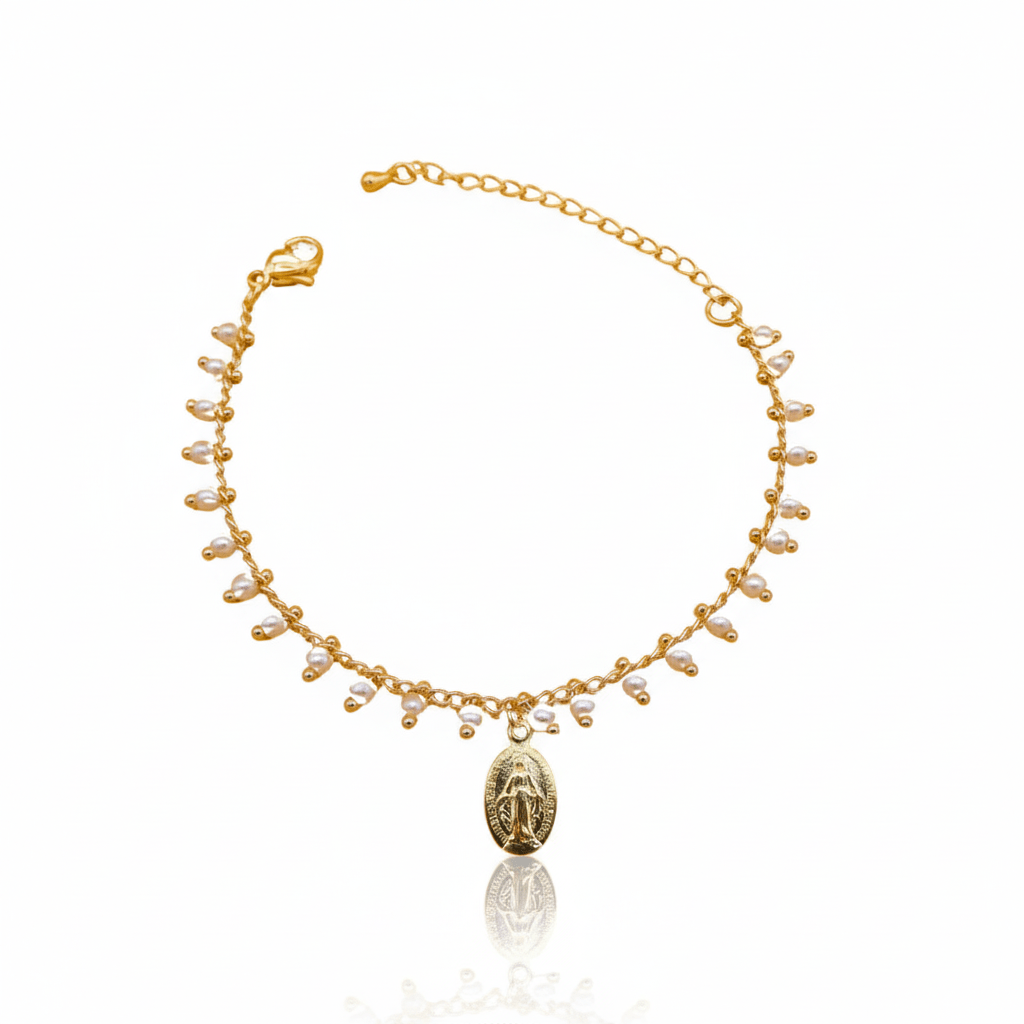 This beautiful Miraculous Pearl Blessing Bracelet offers a touch of heavenly grace and timeless symbolism. Delicate simulated mini-pearls and a lustrous gold-plated finish create an elegant and spiritually meaningful piece. The centerpiece of this exquisite bracelet is the cherished Miraculous Medal, a beloved reminder of faith and devotion. Presented in a sleek white box, it makes a thoughtful gift for yourself or a loved one.