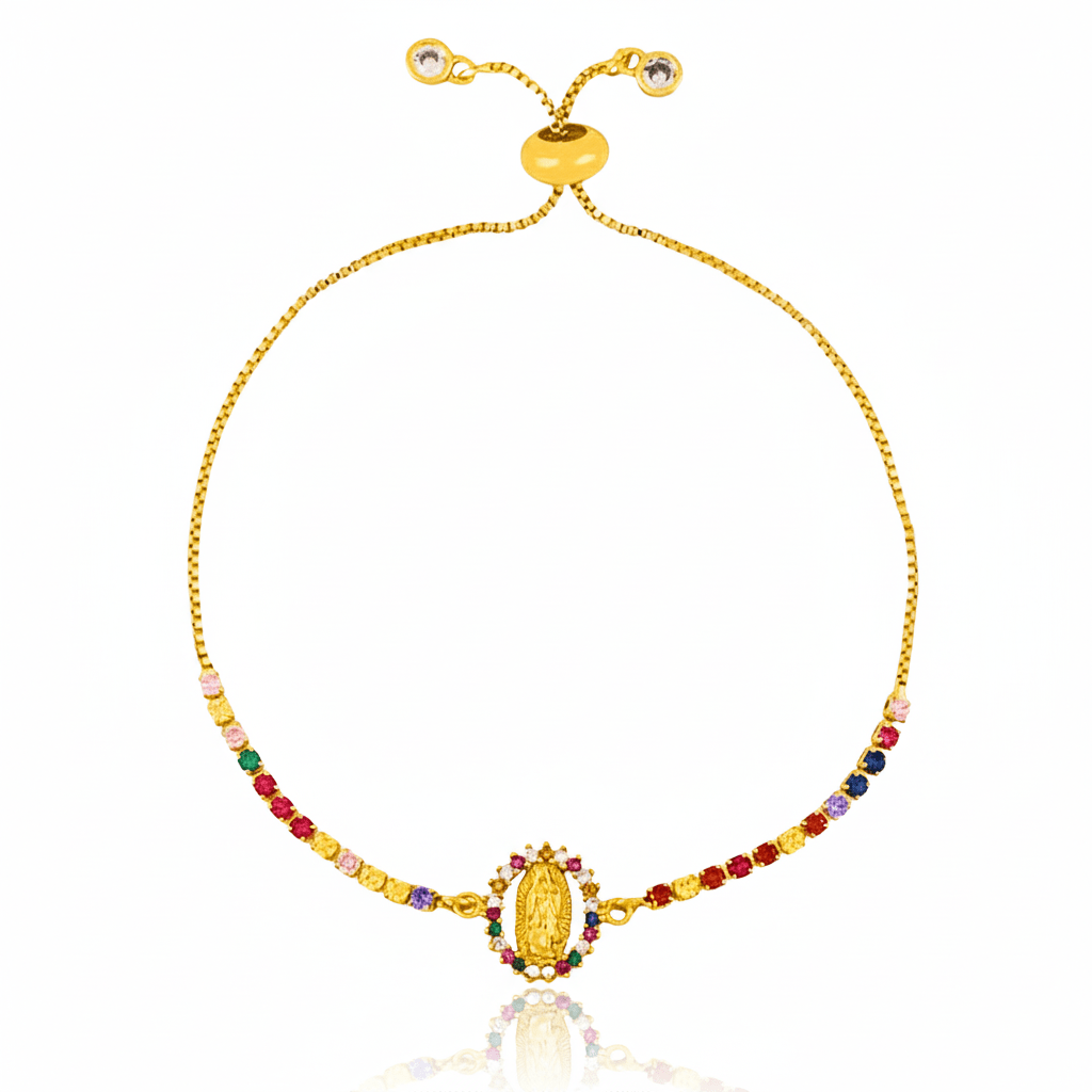 Gold-Plated Our Lady of Guadalupe Colorful Zirconia Adjustable Bracelet 7.5-inch