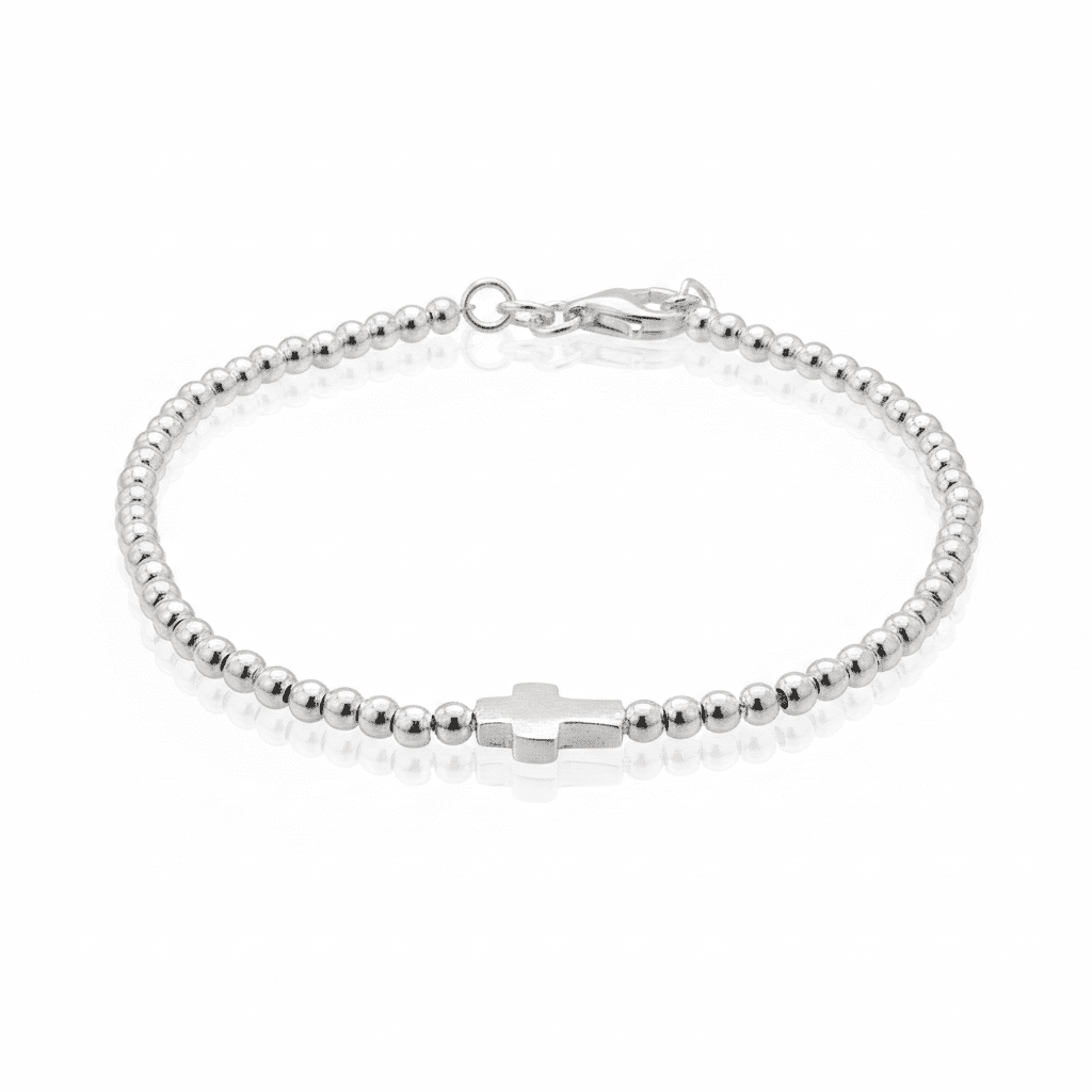 Embrace your faith with this elegant, timeless silver bracelet, designed for the modern woman, adorned with a delicate cross charm.