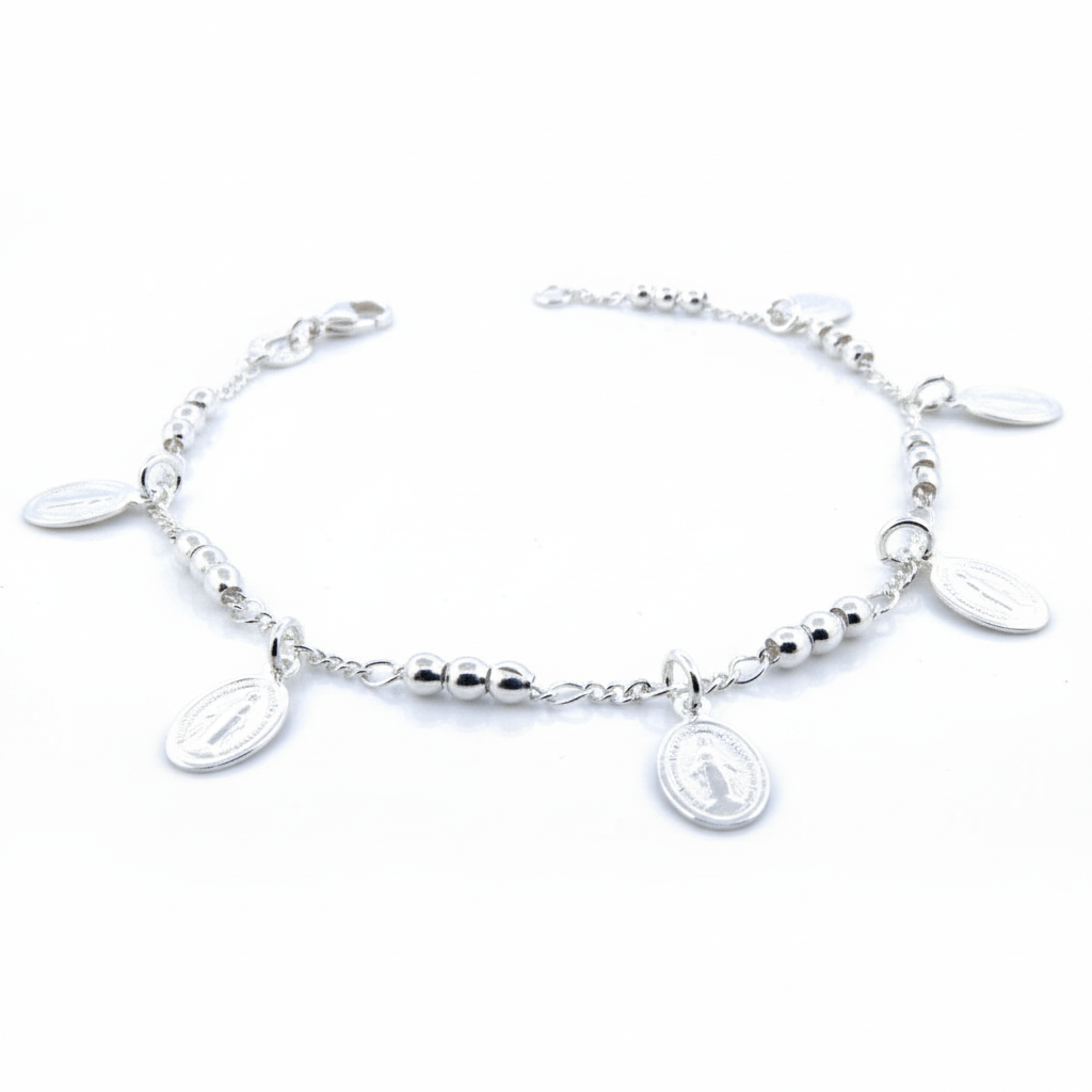 Silver-Plated Bracelet with Our Lady of Grace Charms 7-inch