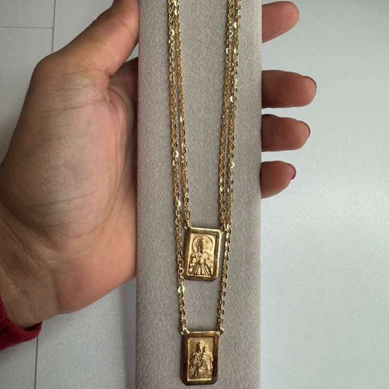 The Reverent Large 18k Gold Scapular Necklace is a bold yet deeply reverent piece that honors a centuries-old Catholic tradition with exceptional craftsmanship and meaning. Made in Brazil by skilled artisans, this larger scapular is crafted in solid 18k yellow gold, with a beautiful matte finish that radiates quiet elegance and strength.