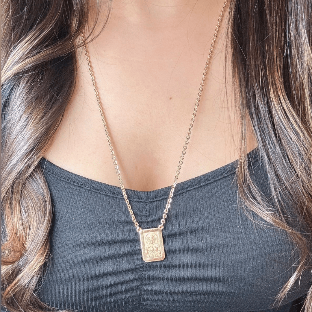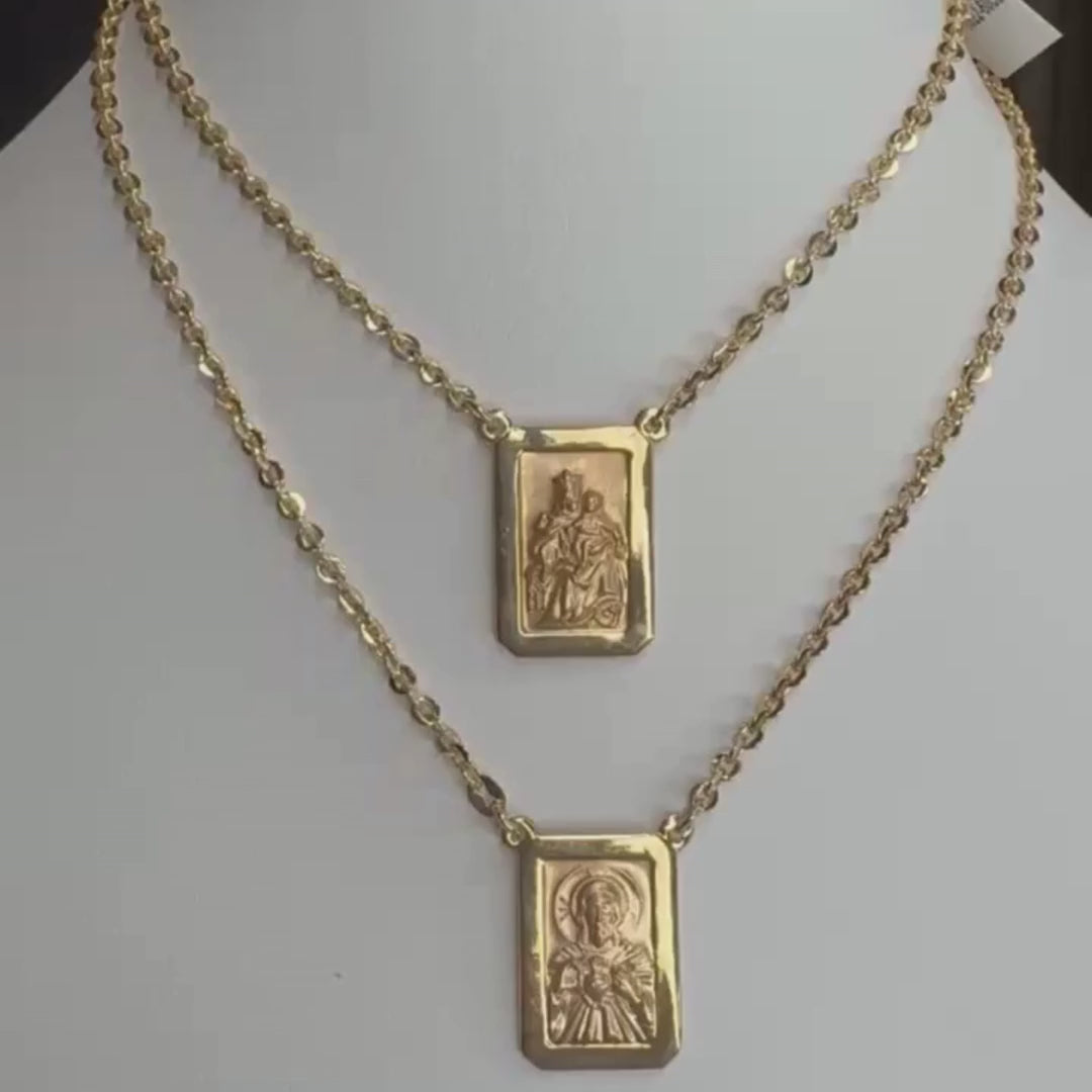 The Reverent Large 18k Gold Scapular Necklace is a bold yet deeply reverent piece that honors a centuries-old Catholic tradition with exceptional craftsmanship and meaning. Made in Brazil by skilled artisans, this larger scapular is crafted in solid 18k yellow gold, with a beautiful matte finish that radiates quiet elegance and strength.