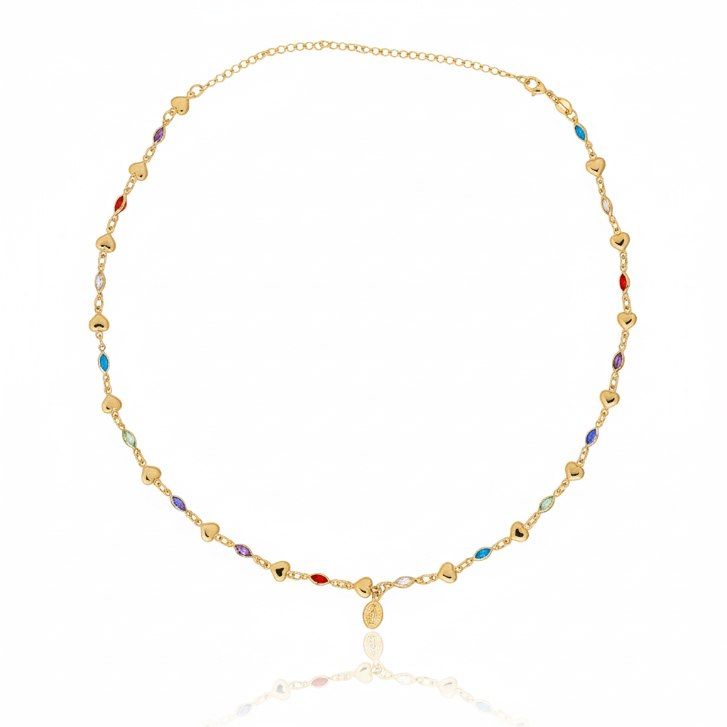 Gold-Plated Multicolor Zirconia Our Lady of Grace Necklace 16-inch