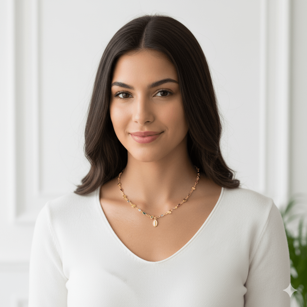 With its multicolored and gold-plated design, this Our Lady of Grace necklace is sure to stand out from the crowd. It features an intricately detailed silhouette of the Virgin Mary, accompanied by a stylish necklace chain. A classic piece of jewelry that symbolizes faith and devotion, it's perfect for everyday wear or for special occasions.