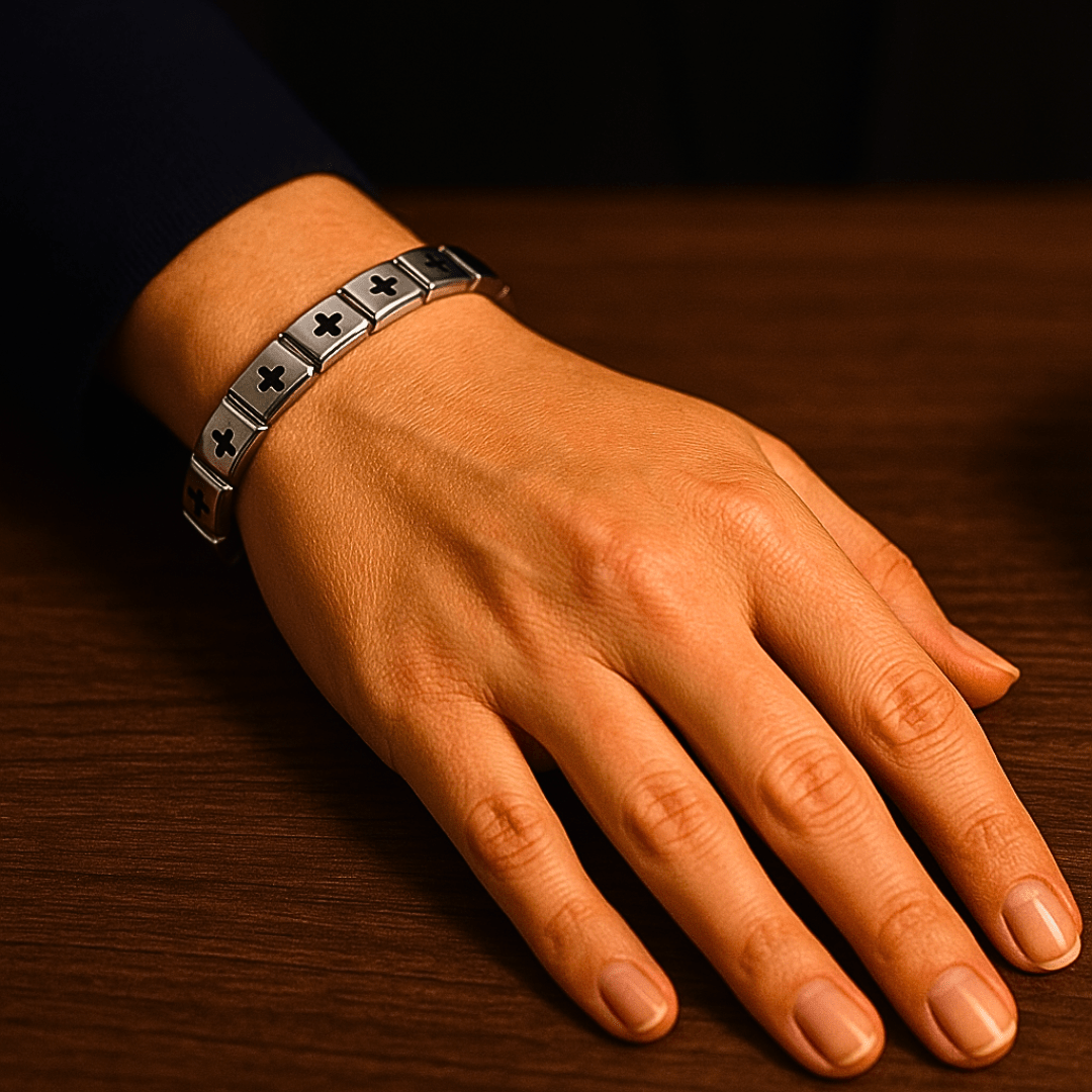 Stainless Steel Cross Charm Bracelet – Adjustable, Italian Design