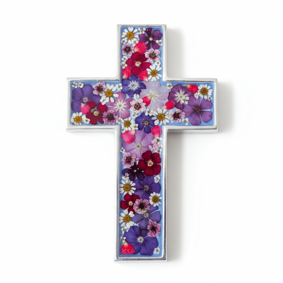 Pressed Flowers Wall Cross 6.5" - Guadalupe Gifts