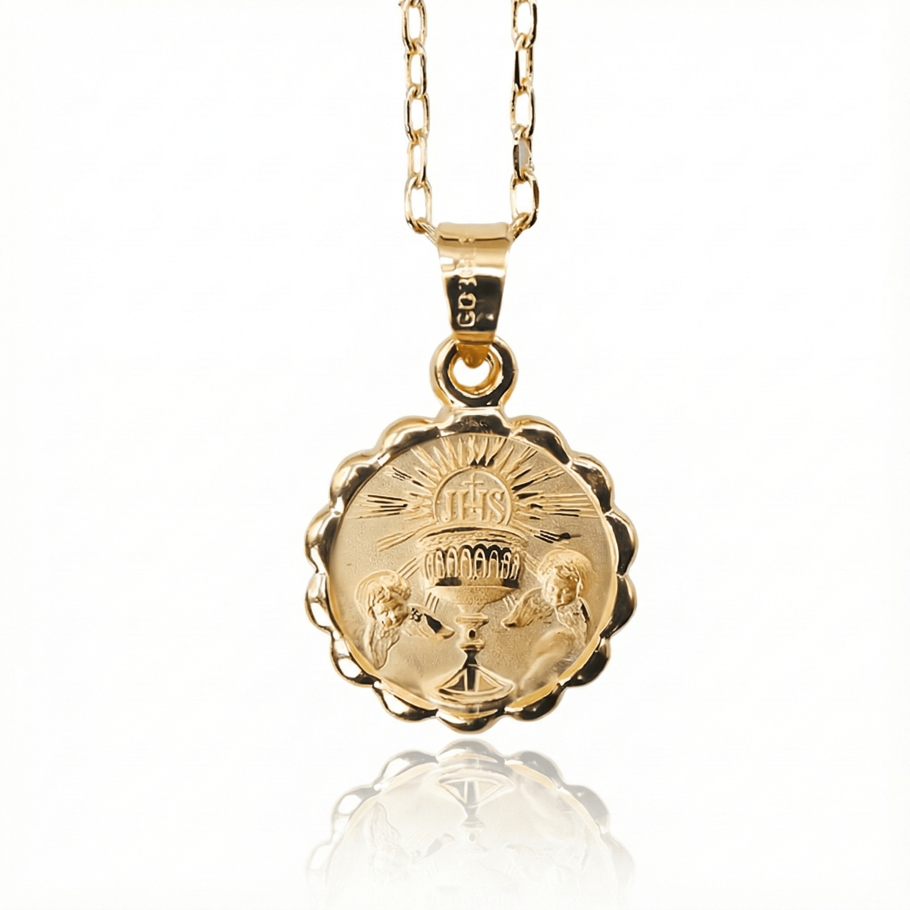 Gold First Communion Necklace | Floral Style | Chalice 18-inch