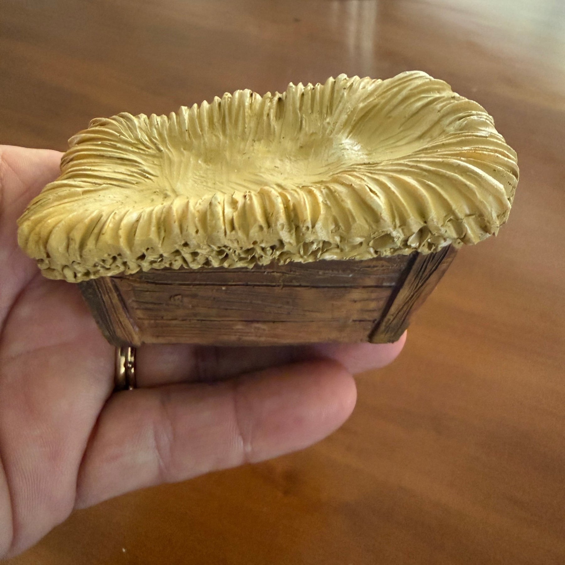 Measuring just the right size for shelves, altars, or personal prayer corners, this piece offers a serene presence in any space. Its compact yet expressive form makes it ideal for home altars, nurseries, or as a gift during Advent, Christmas, Baptisms, or baby showers.