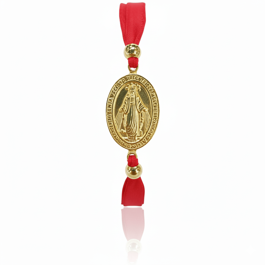 Symbol of Devotion:The intricate Miraculous Medal is a constant reminder of Mary's intercession and the graces associated with her medal.