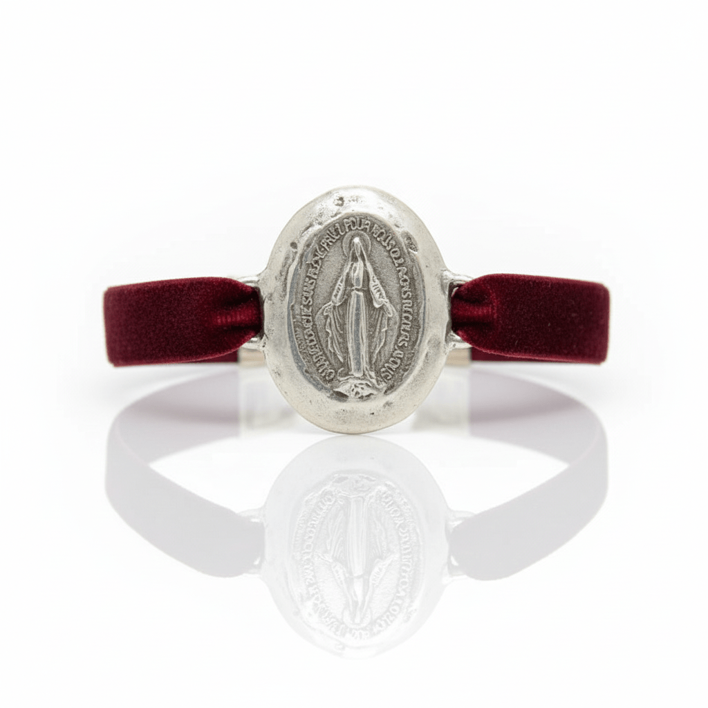 Silver-Plated Miraculous Medal Velvet Bracelet 7.5-inch