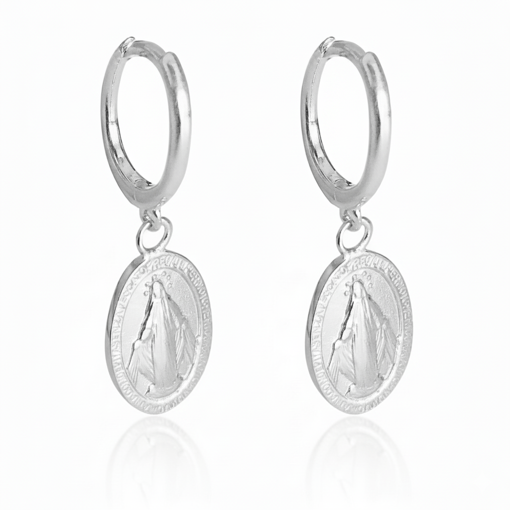 Embrace your faith with these elegant sterling silver Virgin Mary huggie hoop earrings. These timeless earrings feature a beautifully detailed Virgin Mary design, perfect for daily wear and special occasions. Crafted from high-quality sterling silver, they are durable and hypoallergenic. The huggie hoop style ensures a comfortable and secure fit. These earrings make a thoughtful gift for Catholic women of all ages.