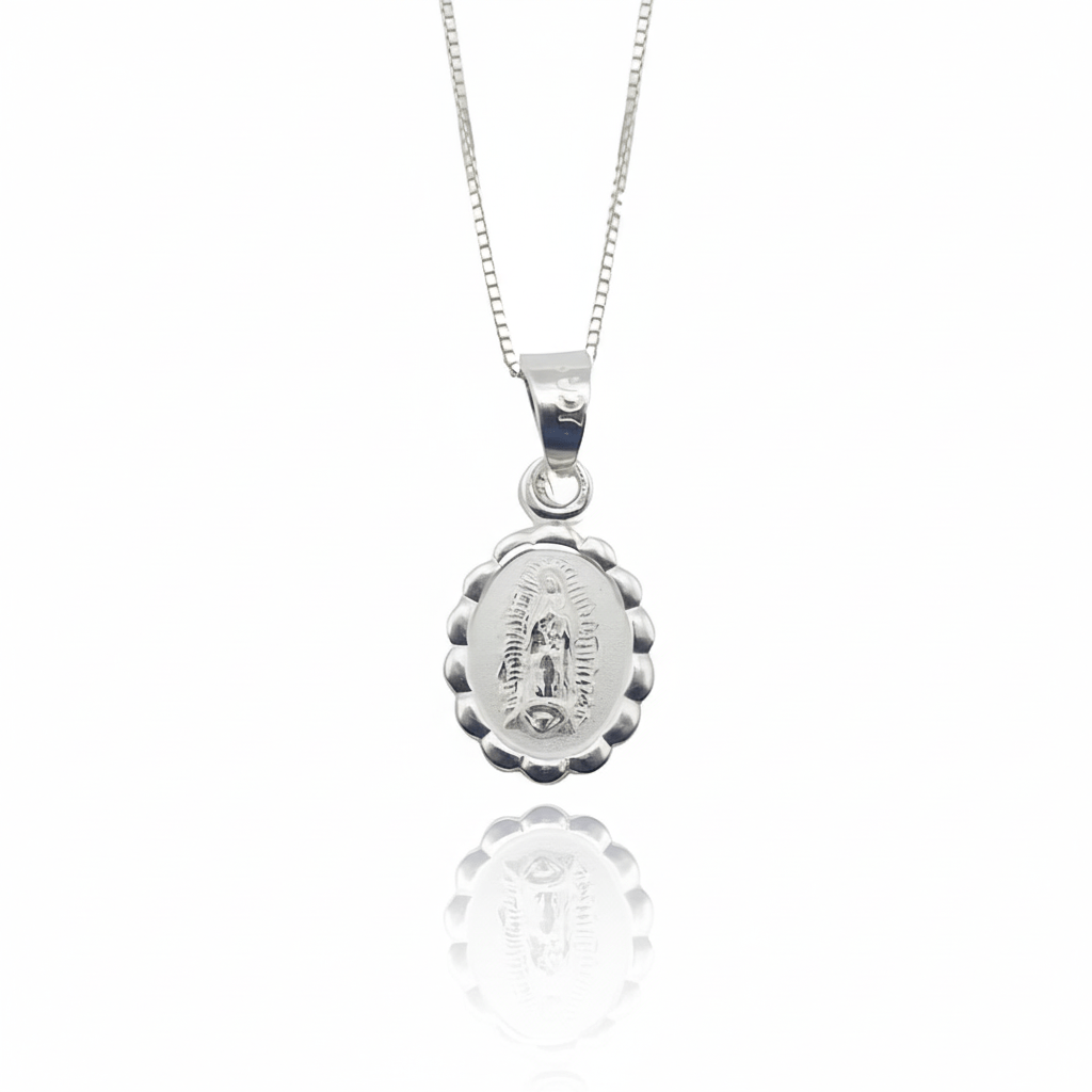 Our Lady of Guadalupe Medal Mini Oval Silver Floral Necklace - Guadalupe Gifts