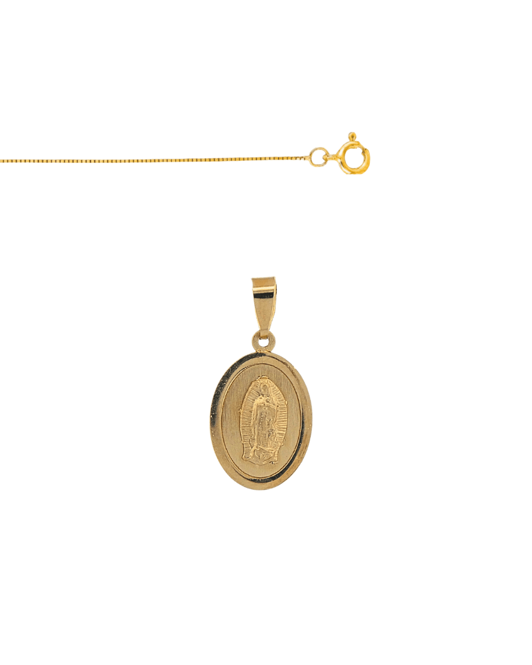 14k Gold Virgen de Guadalupe Oval Pendant 0.4" X 0.7" - Guadalupe Gifts