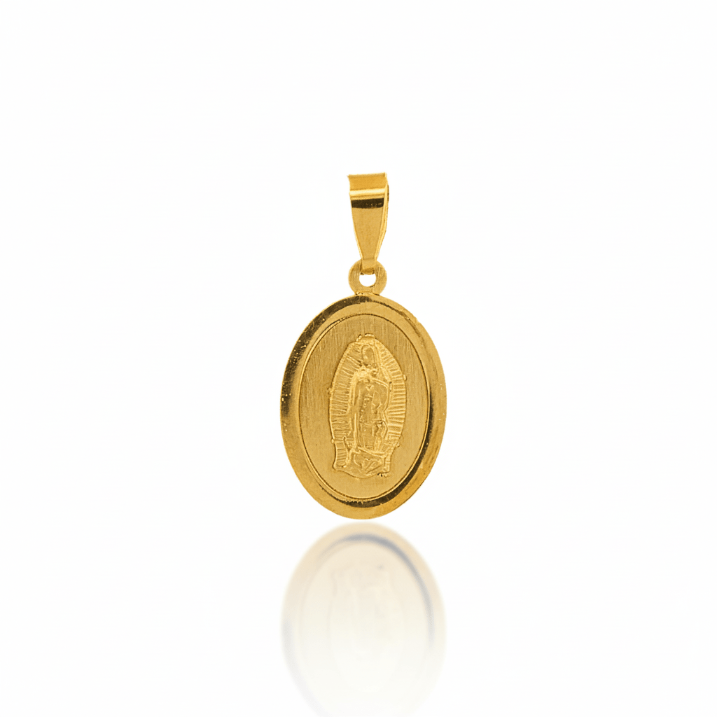 14k Gold Virgen de Guadalupe Oval Pendant 0.4" X 0.6" - Guadalupe Gifts