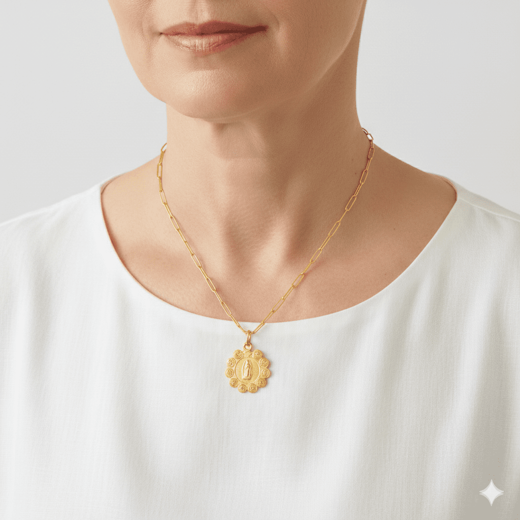 Gold-Plated Our Lady of Guadalupe Necklace 22-inch