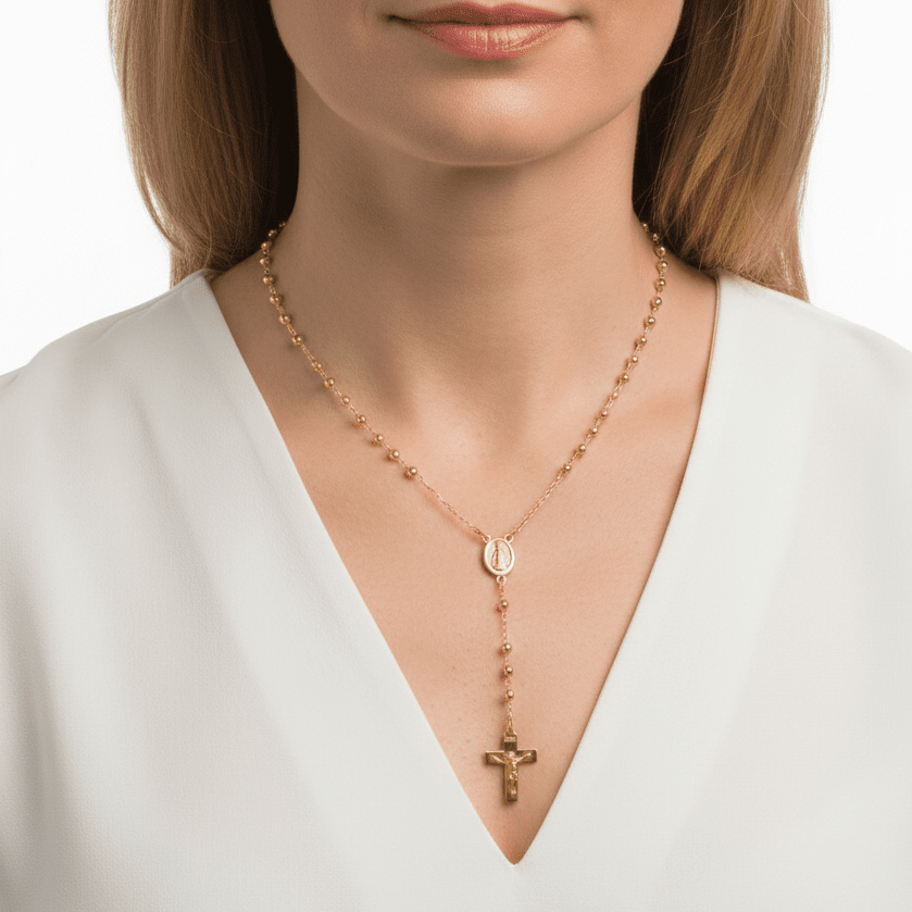 This versatile rosary gold necklace is ideal for various occasions, including First Communions, Confirmations, Anniversaries, Birthdays, Valentine's Day, Mother's Day, Father's Day, and Graduations. With its timeless appeal, this thoughtful present is suitable for recipients of all ages, regardless of gender, making it a delightful choice for any special event.