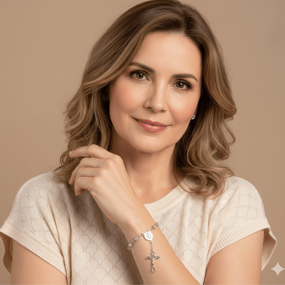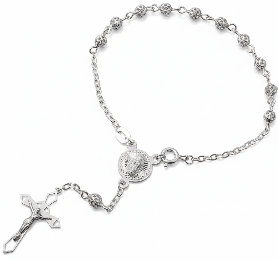This beautiful sterling silver bracelet is designed to help you stay mindful of prayer. It includes a Our Lady of Guadalupe pendant, known for bringing blessings to those who honor Our Blessed Mother. This elegant piece is sure to be treasured by the recipient.