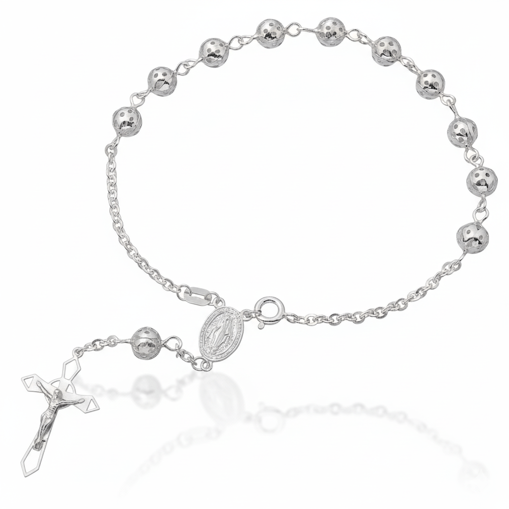 Silver Rosary Bracelet of the Miraculous Medal with Filigree Beads - Guadalupe Gifts