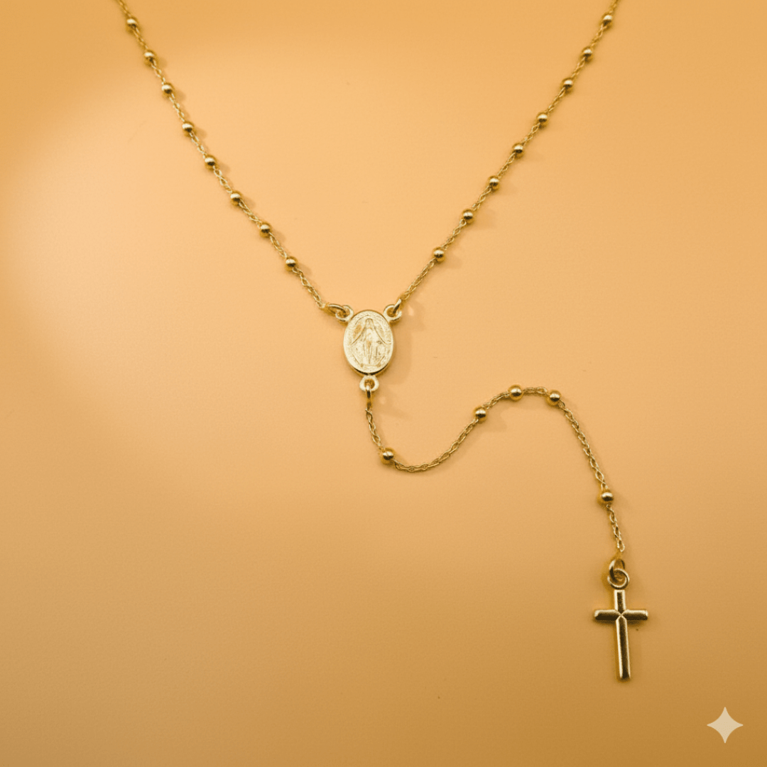 Gold-Plated Silver Tiny Bead Miraculous Medal Rosary Necklace - Guadalupe Gifts