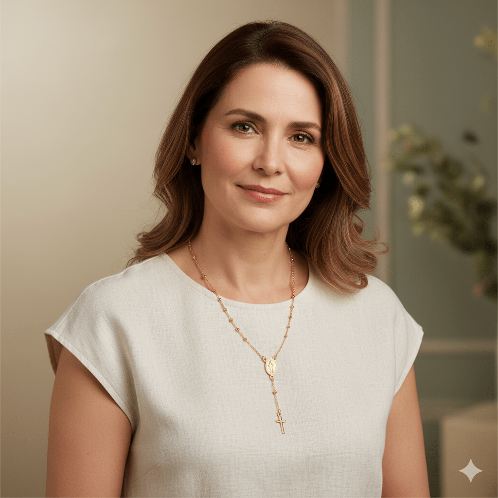 This beautiful rosary jewelry is a stylish and meaningful accessory, perfect for any wardrobe. Intricately crafted in genuine Italian jewelry, this small Miraculous Medal is gold-plated over sterling silver and features extraordinary detail that catches the eye and is sure to draw compliments.