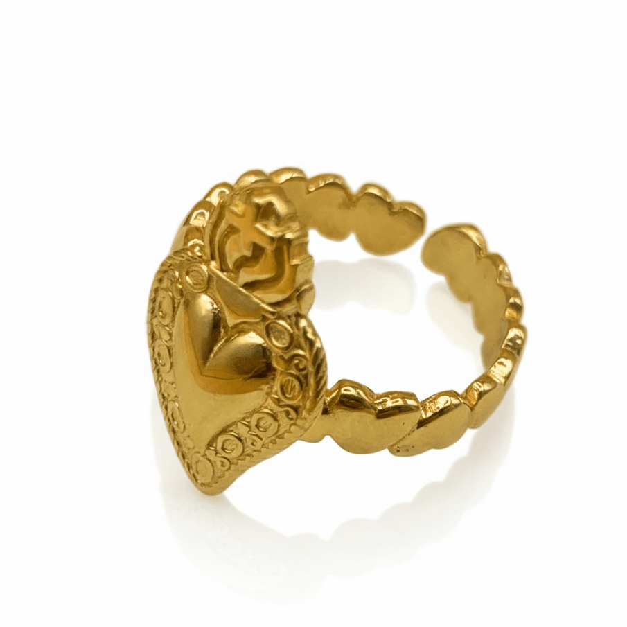 Embrace your faith with this beautiful Sacred Heart of Jesus ring. Crafted in Italy from 18k gold-plated sterling silver, this adjustable ring features a detailed charm depicting the Sacred Heart of Jesus. Perfect for everyday wear, layering with other pieces, or as a thoughtful gift for special occasions, such as confirmations, baptisms, or birthdays. Each ring arrives in an elegant gift box, ready for gifting or safekeeping.
