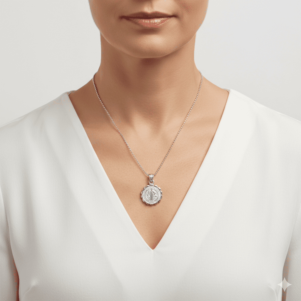 Medalla de san benito plata on a chain