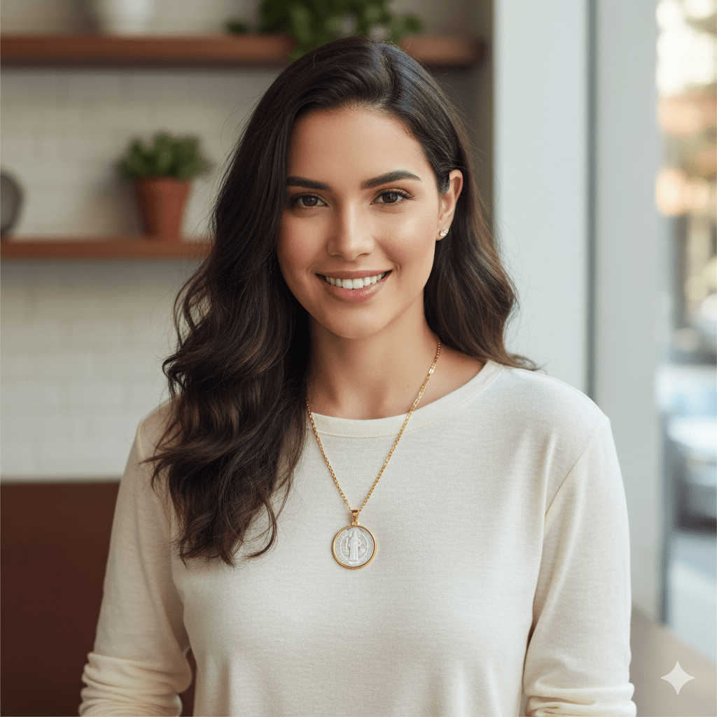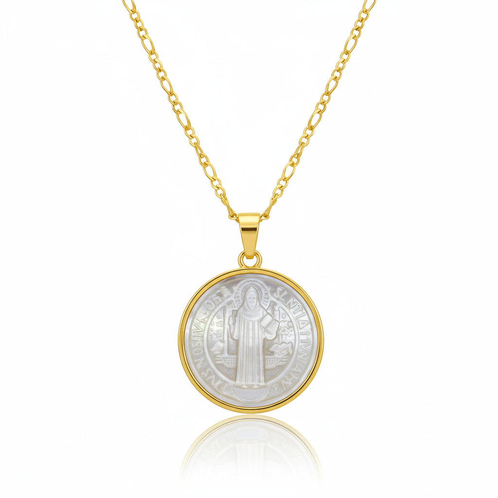 Mother of Pearl St Benedict Medal Necklace - Guadalupe Gifts