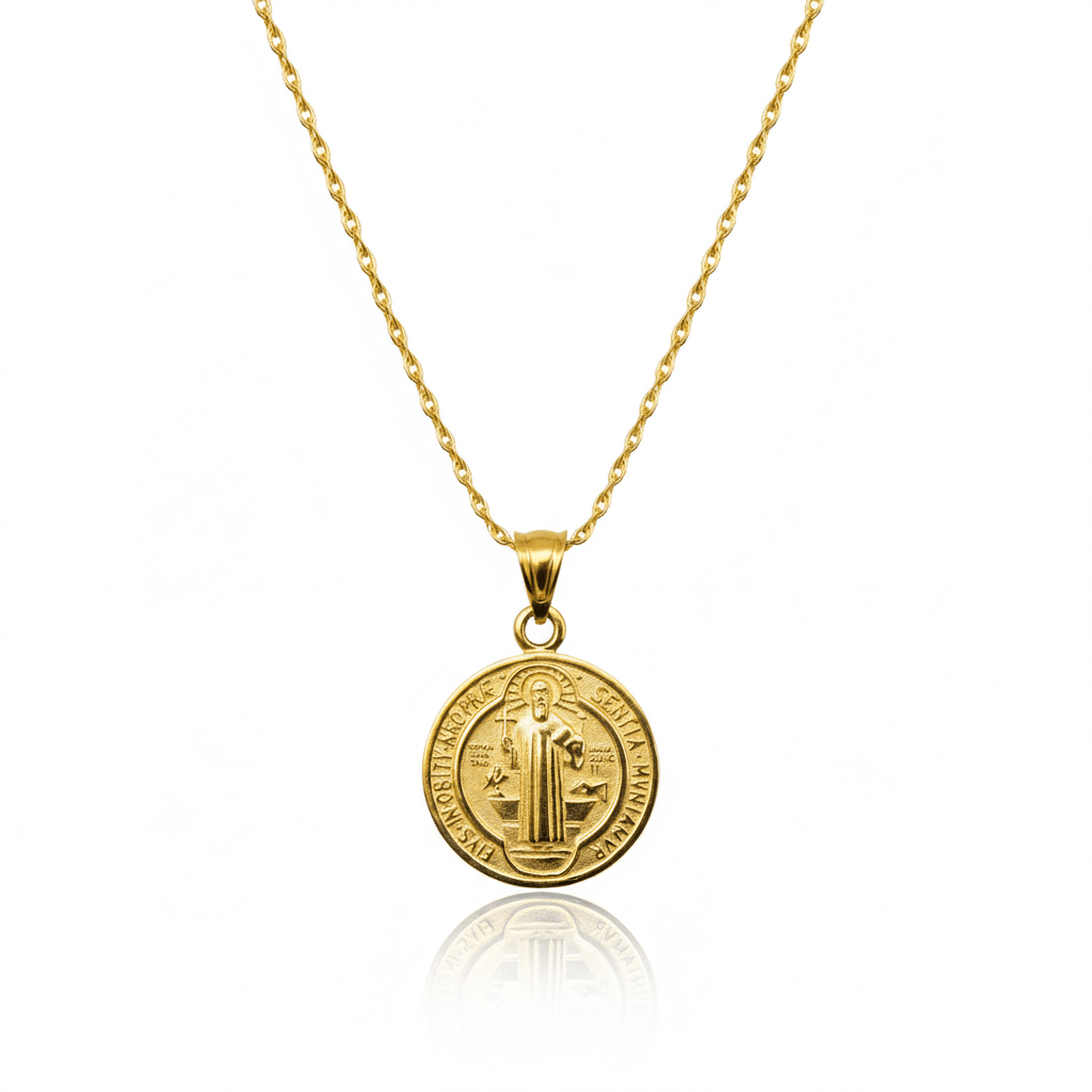 Gold St Benedict Medal Necklace - Guadalupe Gifts