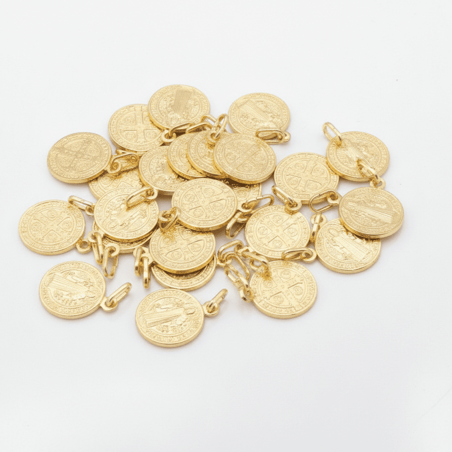 Silver 14k Gold Bezel St Benedict Medal Pendant 0.8" - Guadalupe Gifts
