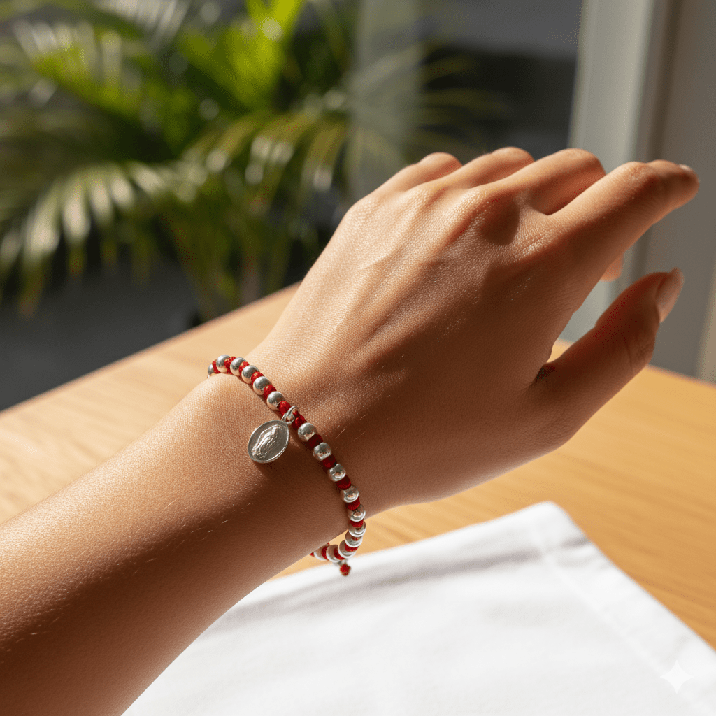 Silver Guadalupe's Faithful Medal Red String Bracelet 7.5-inch