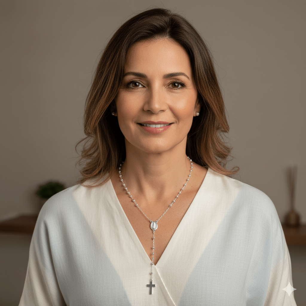This unique Silver Rosary Necklace is a beautiful statement piece that looks stunning on any outfit and is perfect for anyone who values faith, tradition, and fashion. Made from high-polished sterling silver, it exudes luxury and timeless elegance, serving as a poignant reminder of faith with its stunning cross and center medal of the miraculous Mary.