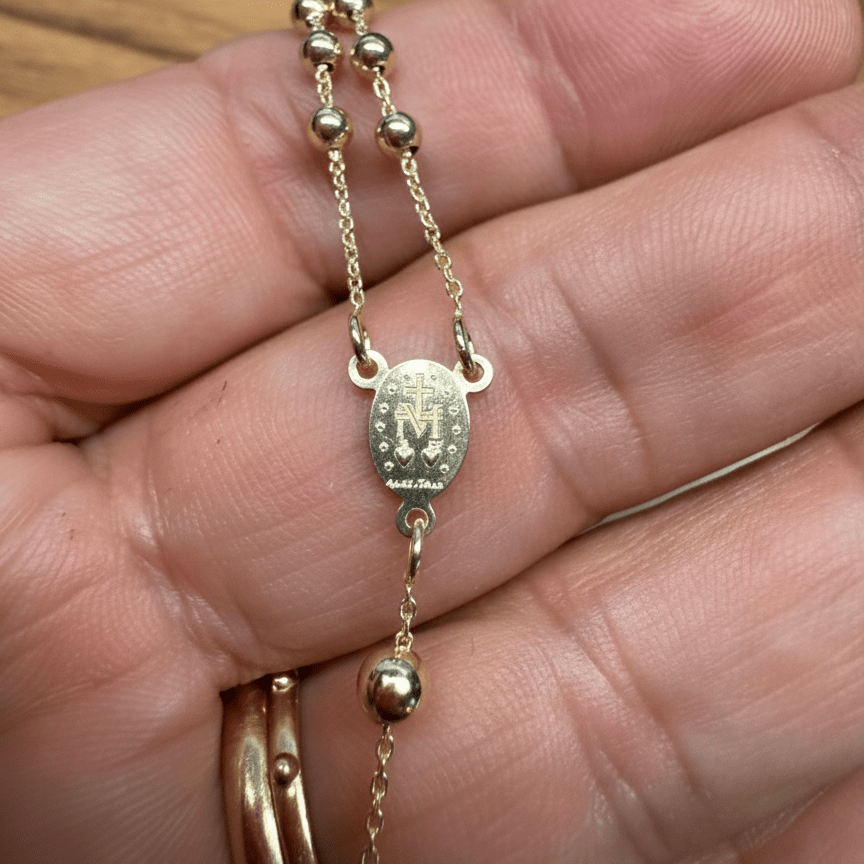 Elevate your daily devotion with this exquisite 14k Gold Rosary Necklace with Miraculous Medal & Crucifix, beautifully handcrafted in Italy. This timeless piece brings together spiritual symbolism and refined elegance, making it the perfect accessory for women who cherish their Catholic faith and appreciate quality, artisan-crafted jewelry.