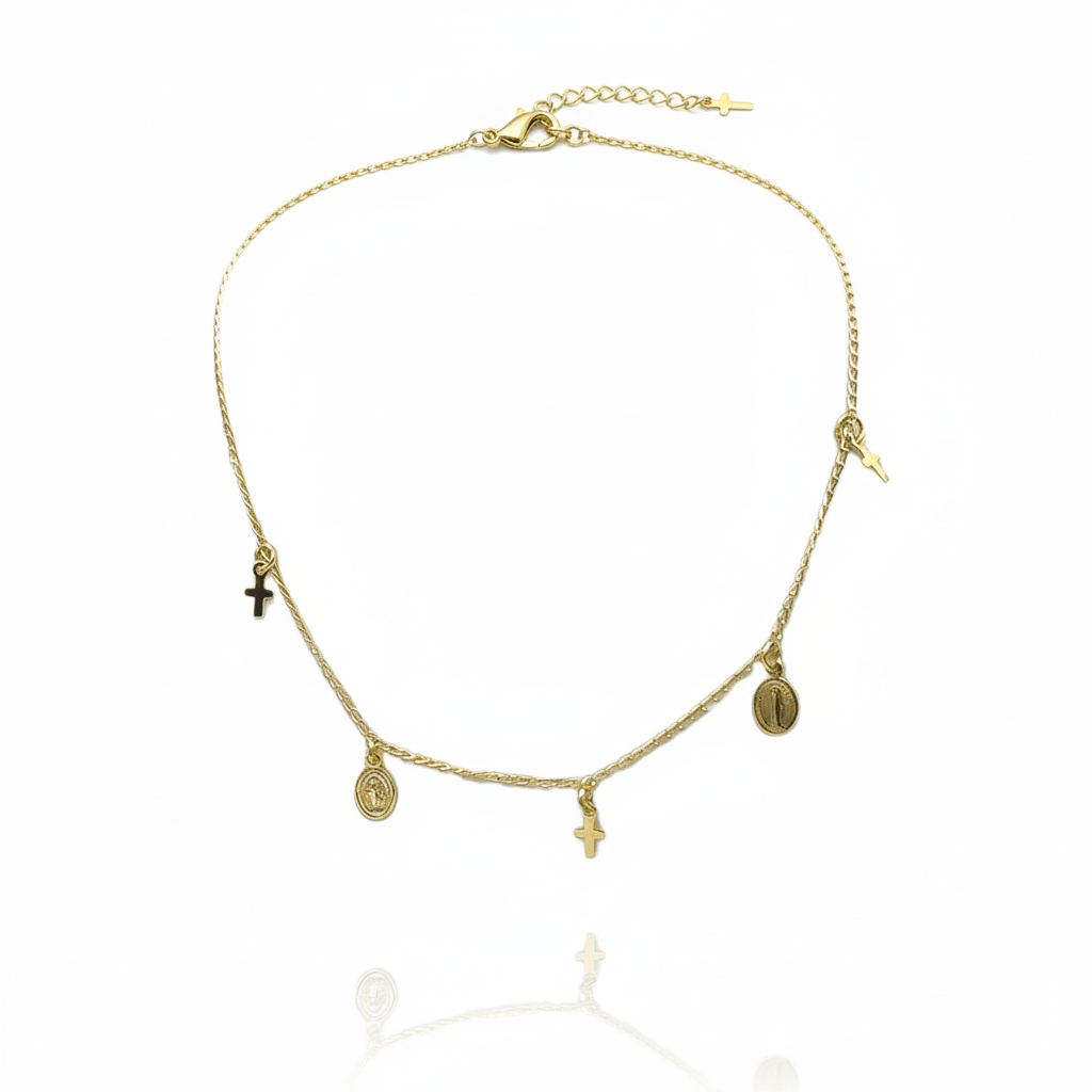 Gold-Plated Virgin Mary Medal & Cross Choker 17-inch