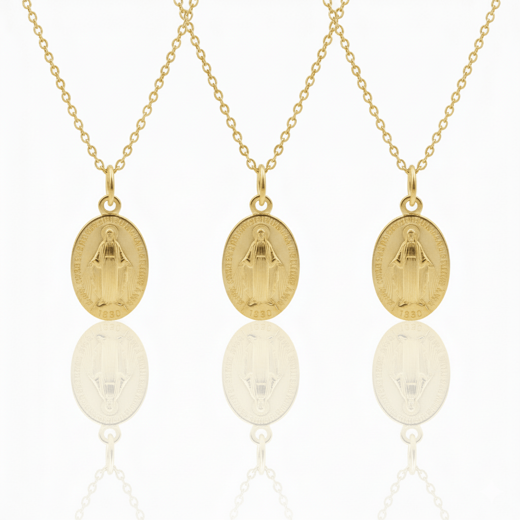 Experience the epitome of Parisian elegance with our exquisite 18" Rue du Bac gold-plated Miraculous Medal Necklace. Meticulously crafted in France, it is a powerful symbol of faith and protection for all occasions.