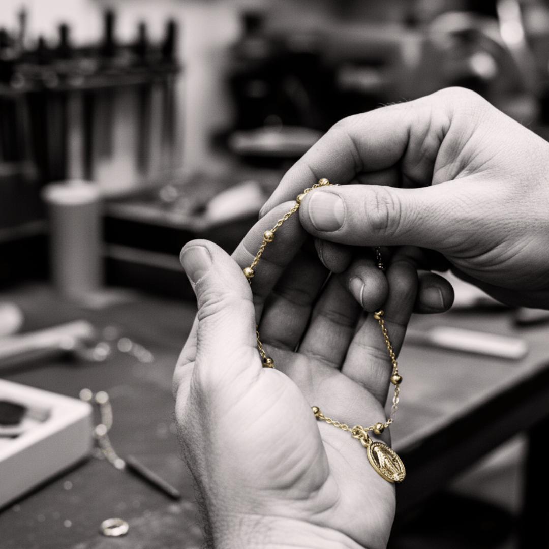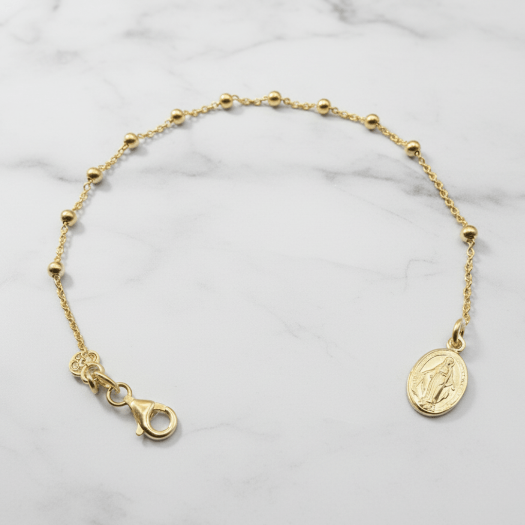 Symbol of Grace: Embrace the blessings of the Miraculous Medal within this rosary-inspired bracelet.