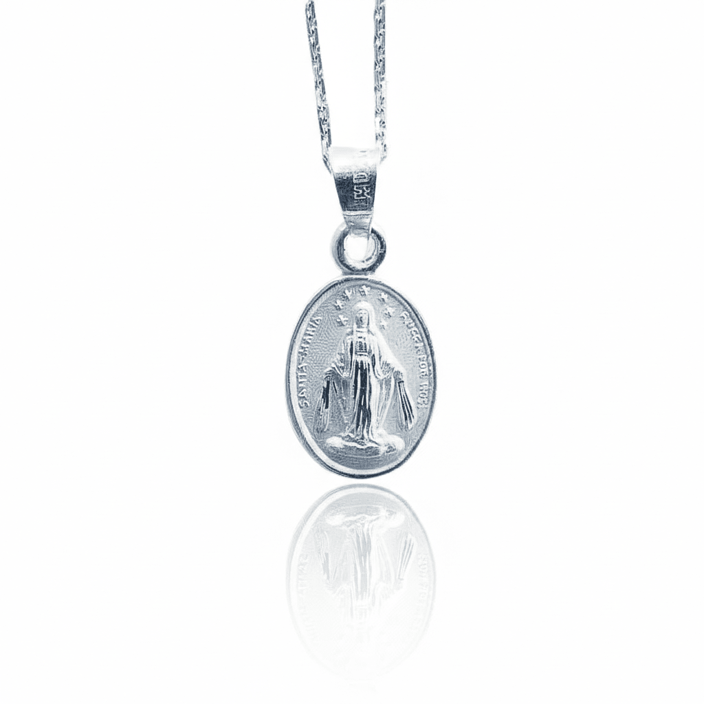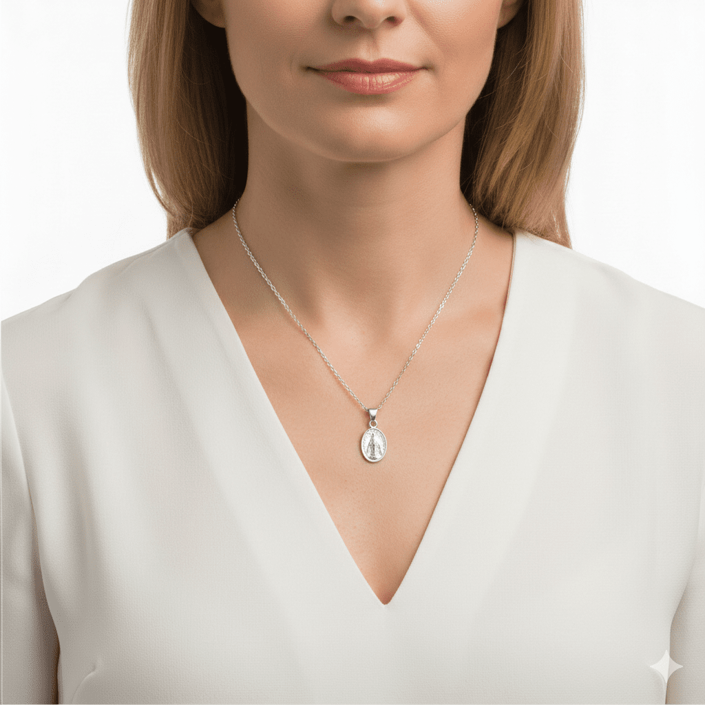 This Sterling Silver Miraculous Medal Necklace is a beautifully designed and crafted piece of jewelry. The silver medal is crafted in Mexico with outstanding craftsmanship, accented with shiny details and a matte background. The necklace is perfect for men and women, making it an excellent gift for someone special. The silver medal is hypoallergenic and safe to wear, and it's a classic everyday piece you'll love to show off.