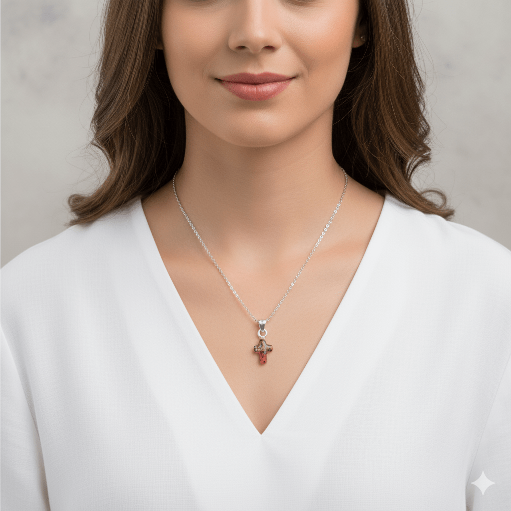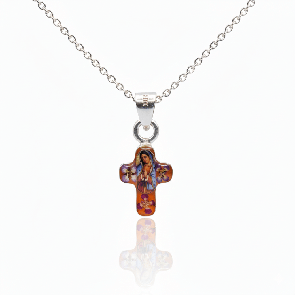 Guadalupe Mini Cross Necklace w/ Pressed Flowers 18-inch