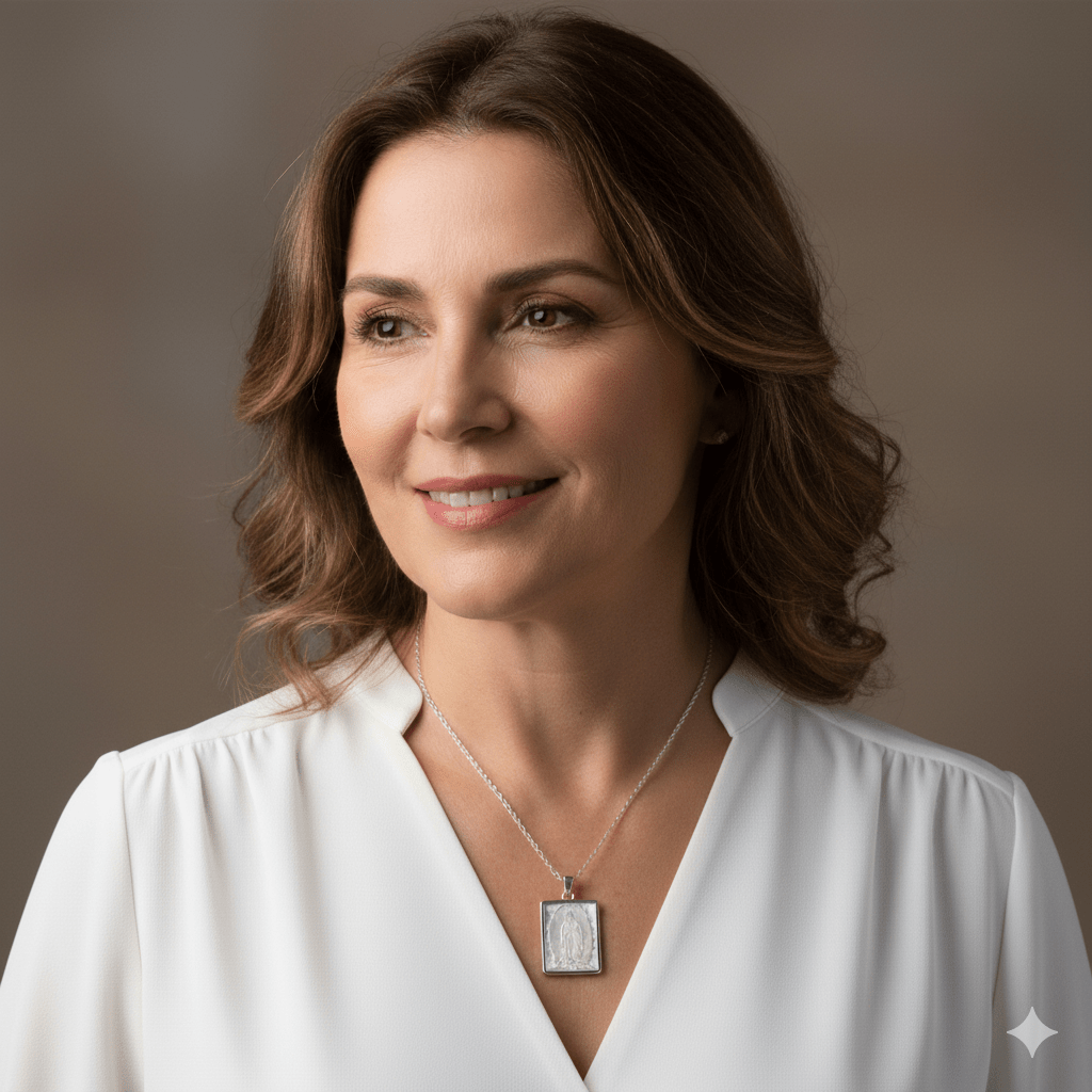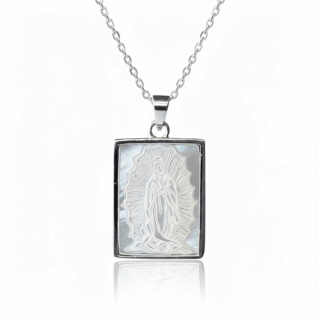Silver-Plated Guadalupe Necklace w/ Mother of Pearl 18-inch