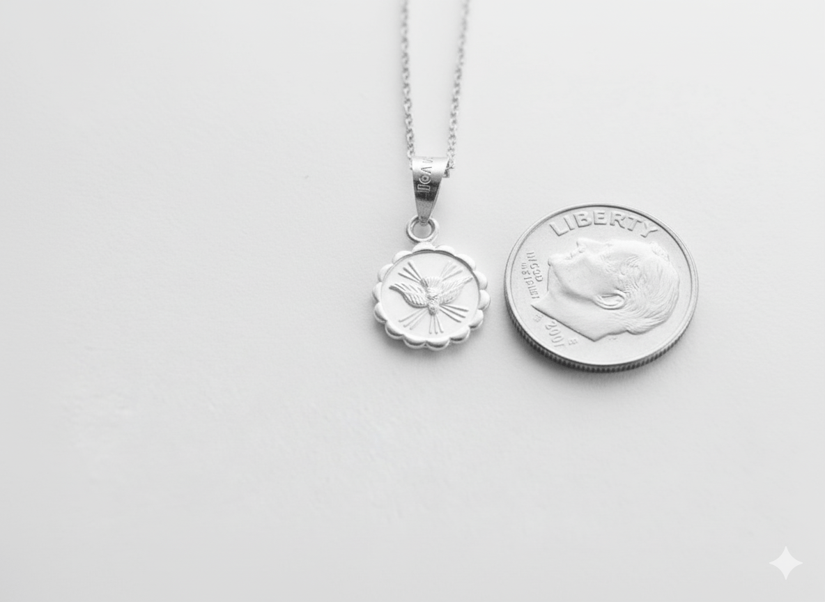 This necklace is perfect for men and women alike and is guaranteed to carry your love wherever you go. Sterling silver jewelry is renowned for its hypoallergenic properties, making it suitable for even the most sensitive skin. Whether given to celebrate confirmation or just because, the Silver Holy Spirit Round-Pendant Necklace will surely become a treasured piece.