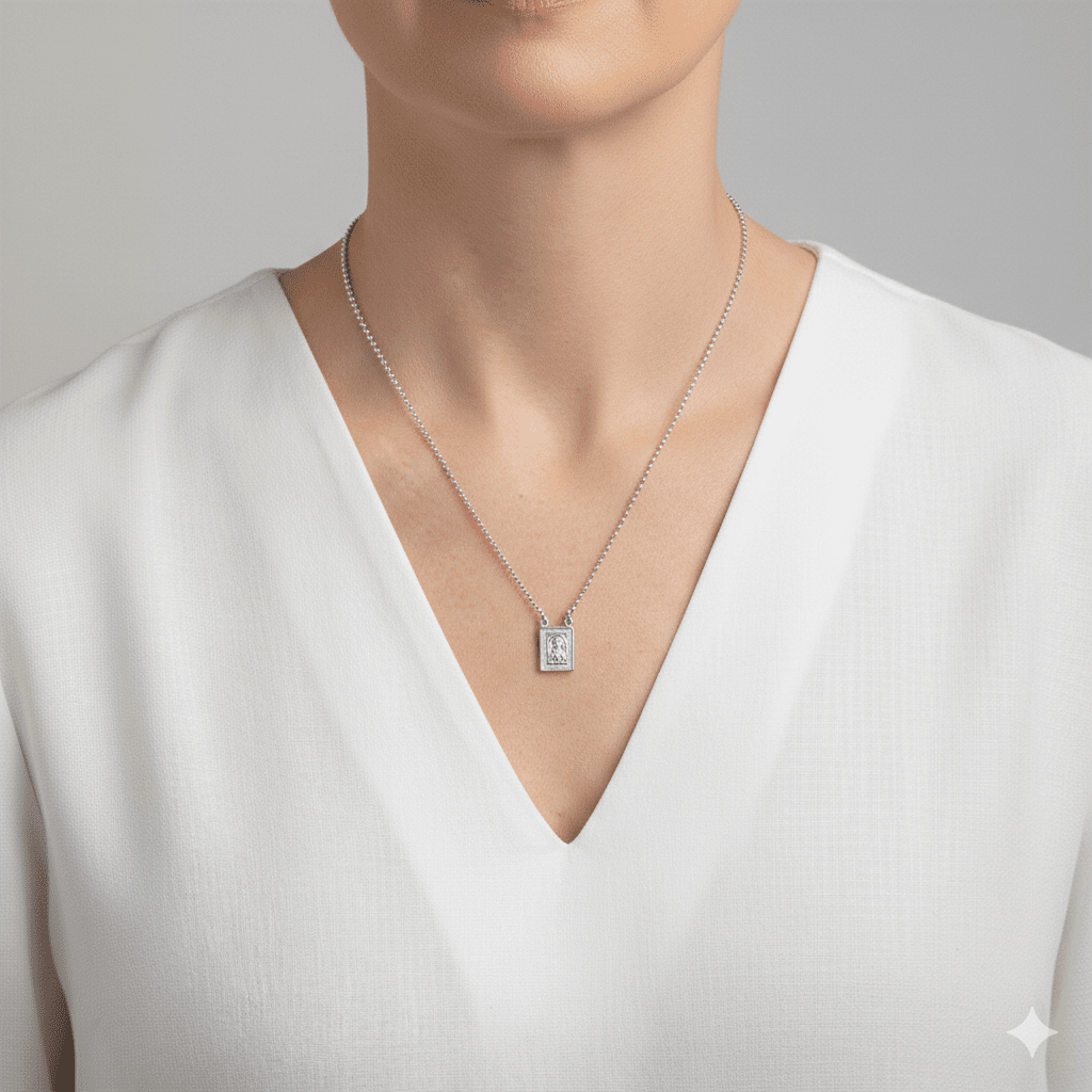 This scapular catholic necklace is the perfect way to express your faith. This beautiful necklace showcases two scapulars, made from metal and silver-plated, suspended gracefully from a delicate chain. A timeless and meaningful accessory, this scapular catholic necklace will be cherished for years.