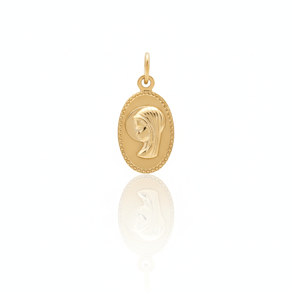 Medalla de la Virgen Niña en Oro (14k Gold) Oval 0.4" x 0.8"